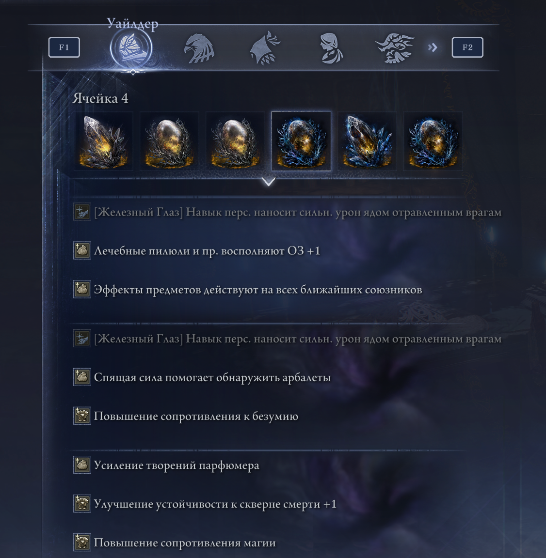 Их также необходимо навешивать на перки. Также принимайте во внимание, что на реликвиях нельзя размещать одинаковые дебаффы (о баффах, думаю, ясно и так):