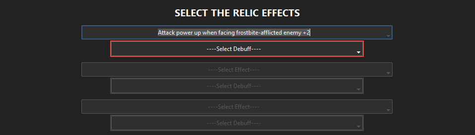 В таблице необходимо действовать аккуратно, составляя билд, потому что как в Valid Relic Rolls исключающих параметров не будет. Так что подготовьте себе заранее билд и только потом редактируйте (не забывайте про дебаффы на глубинных реликах).