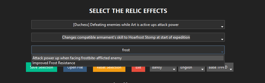 Для этого необходим софт Valid Relic Rolls - он помогает сформировать именно те реликвии, которые возможно получить в игре. Выглядит дело так (можно для удобства включить русский язык):
