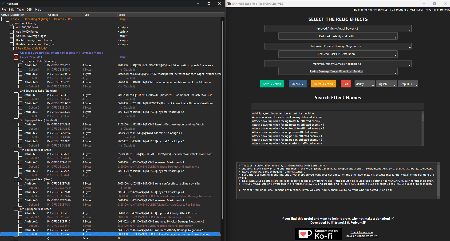 НИКОГДА НЕ РЕДАКТИРУЙТЕ РЕЛИКВИИ, ПОЛУЧЕННЫЕ РАНЕЕ. Высока вероятность отредактировать покупную реликвию с захардкоженными значениями или же реликвию, полученную до DLC с эффектом, который стал доступен только после DLC. Если игра увидит несоответствие, вероятнее всего вы получите бан.