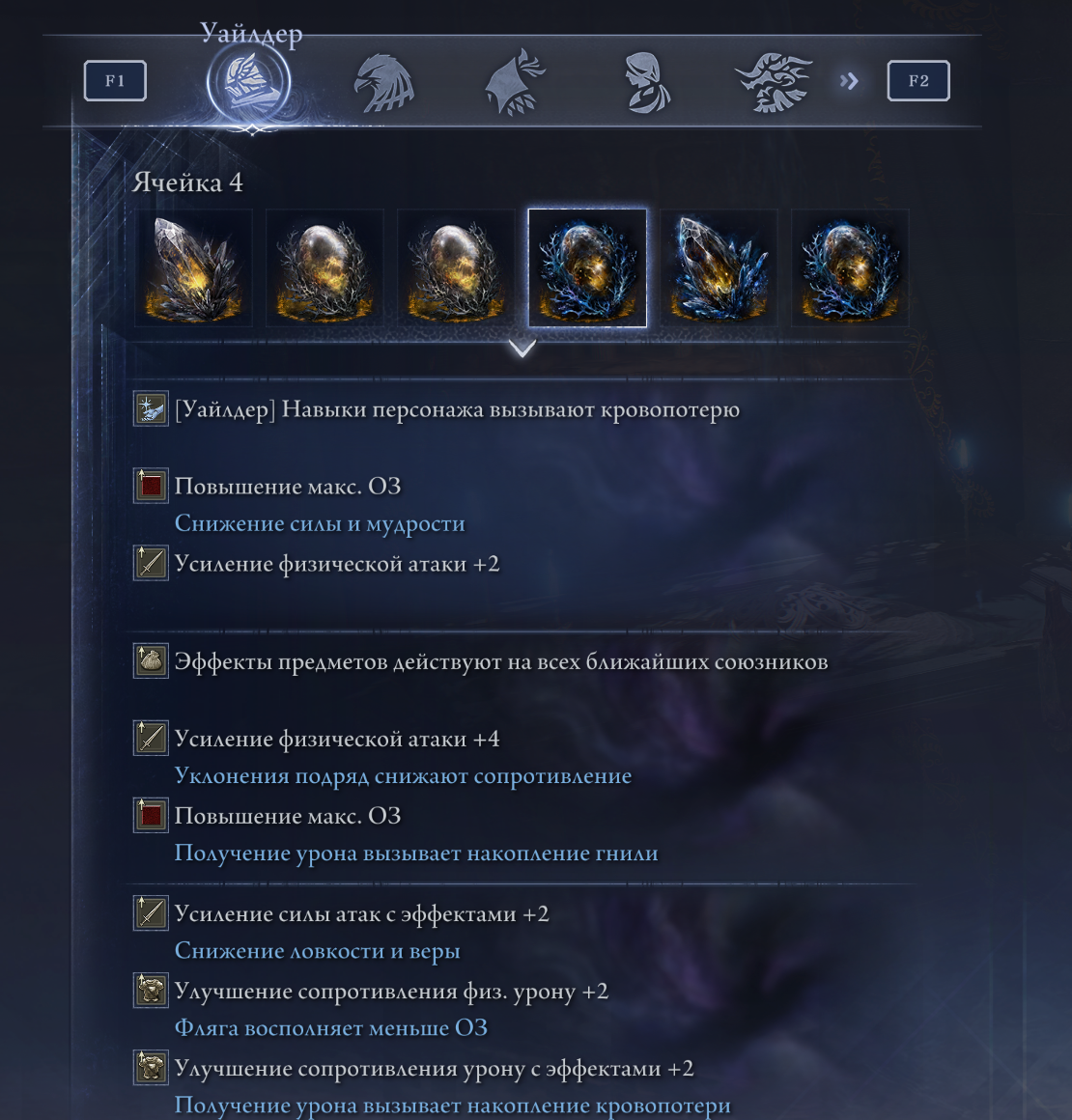 С глубинными реликвиями сложнее: стоит обращать внимание, что некоторые эффекты требуют дебаффы: