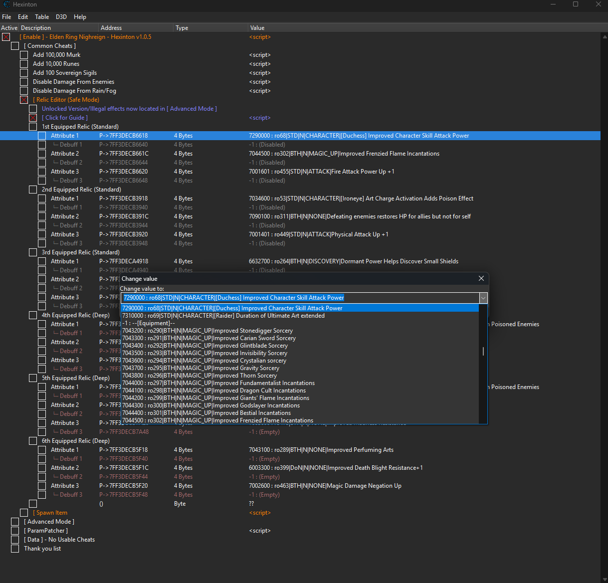 Редактирование реликвий может привести к бану! Используйте на свой страх и риск. ПЕРЕД ВСЕМИ МАНИПУЛЯЦИЯМИ ДЕЛАЙТЕ БЭКАП ВАШИХ СОХРАНЕНИЙ!!!